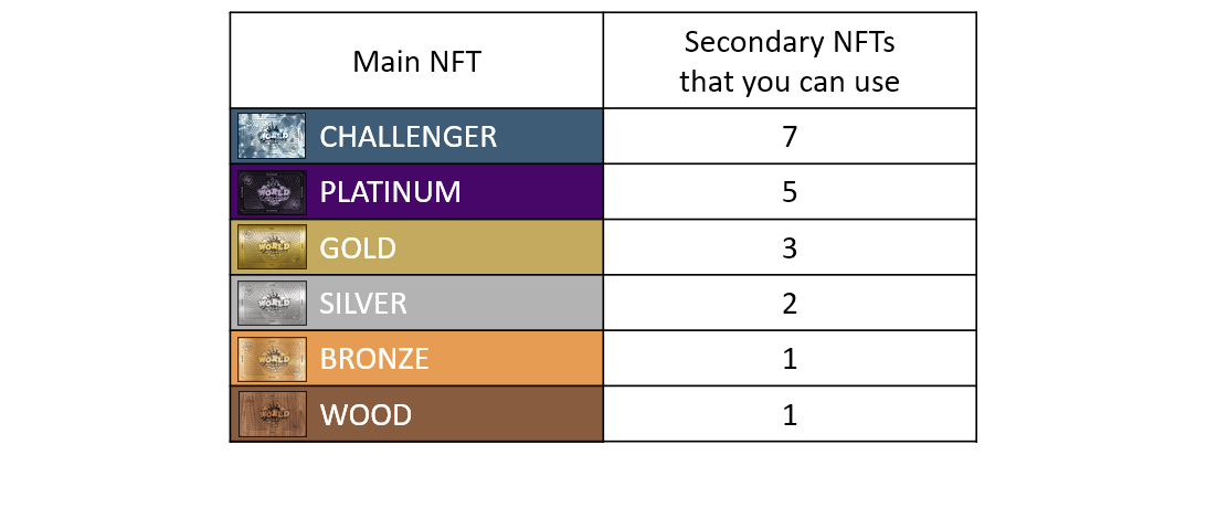 If you have multiple NFTs, you will need to select which one you want to use as the **main NFT** for your account. Depending on the rarity of the selected NFT, you can earn points with more than one NFT simultaneously in each game you play: